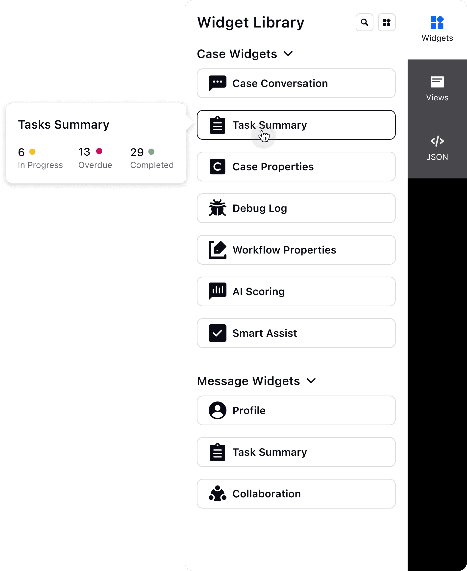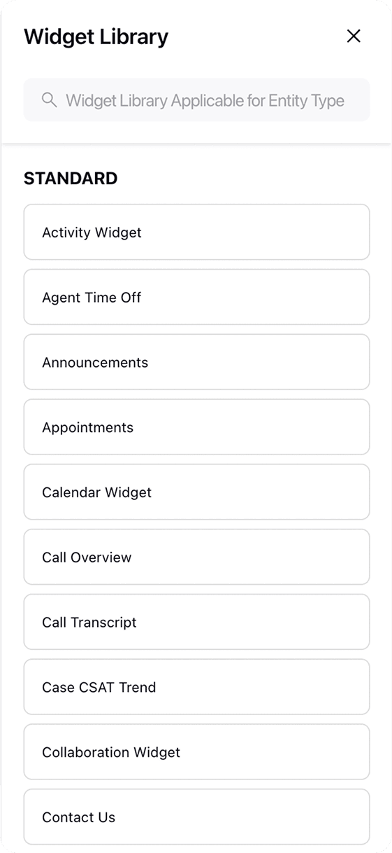 Transformed the widget list into a visual library with icons and hover previews so supervisors can quickly identify and evaluate components.